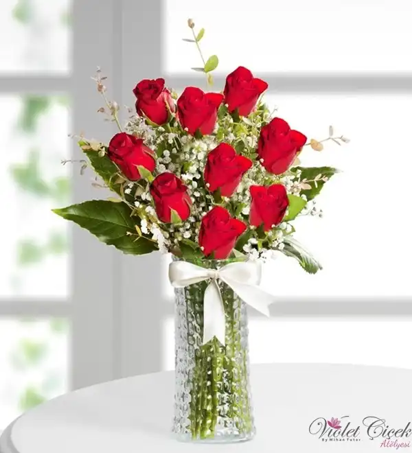 Cam Vazo İçerisinde 9 Adet Gül
