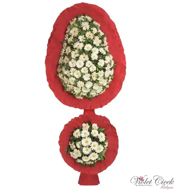 beyaz çiçeklerden oluşan büyük boy iki katlı çelenk
