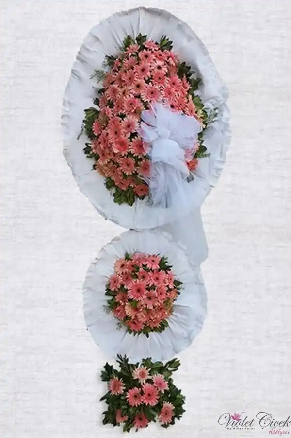 Pembe Çiçekli 2 Katlı Büyük Çelenk
